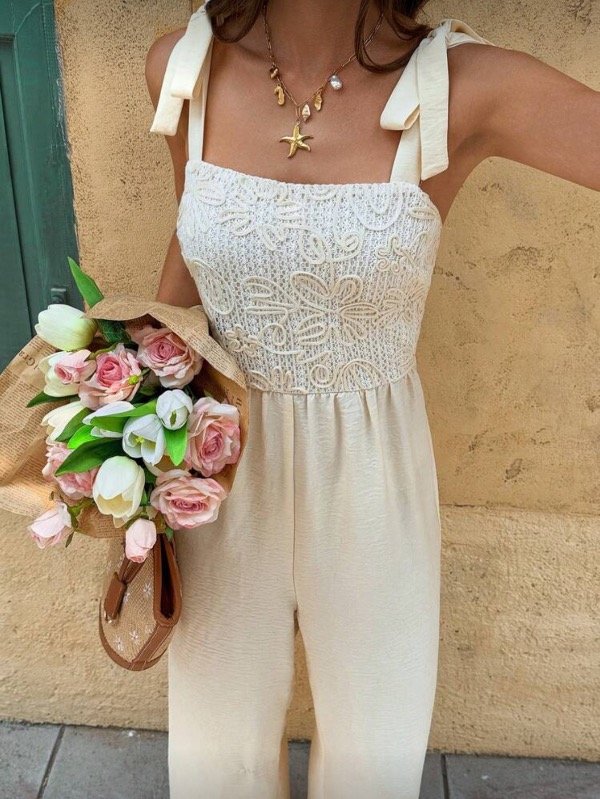 Presenta escote recto con delicado trabajo en el frente y breteles con lazo regulable, que aportan un detalle romántico y permiten ajustar el calce.