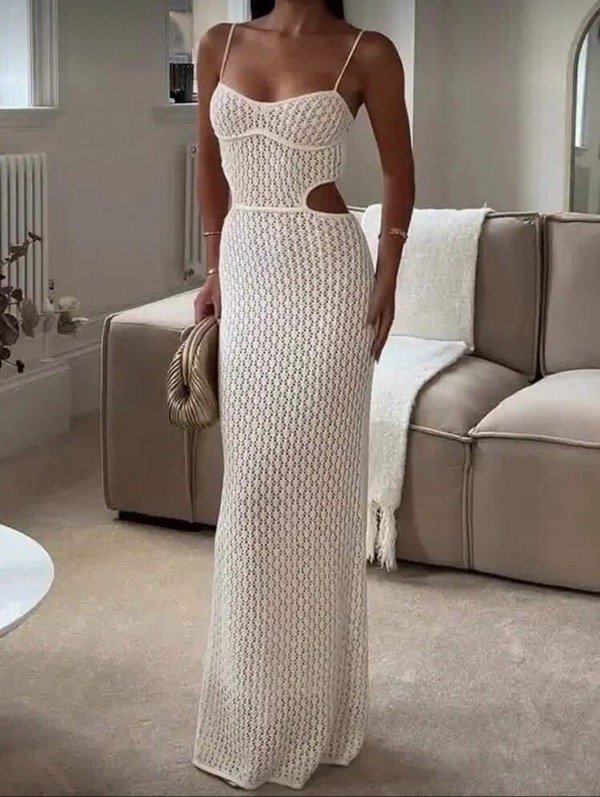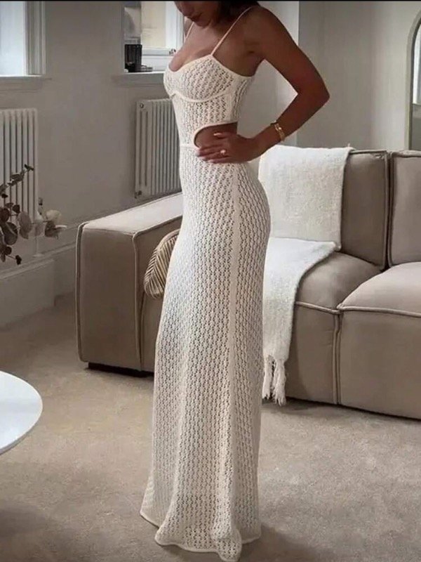 Elegante, femenino y con ese toque boho chic que caracteriza nuestras prendas, este vestido largo de crochet está confeccionado en un tejido abierto que aporta textura y un look artesanal súper actual. Su diseño al cuerpo realza la silueta sin perder comodidad.