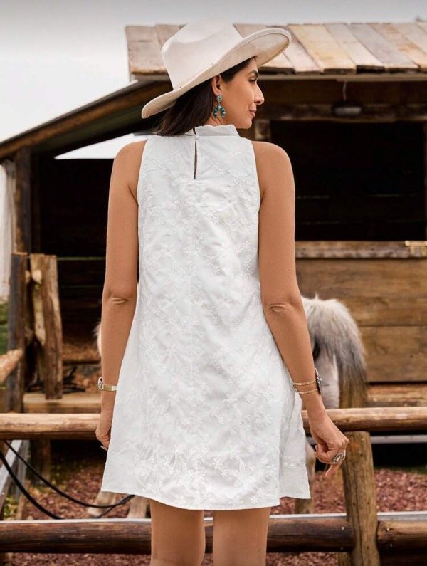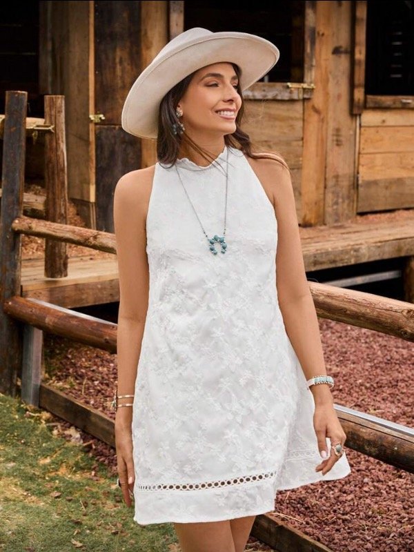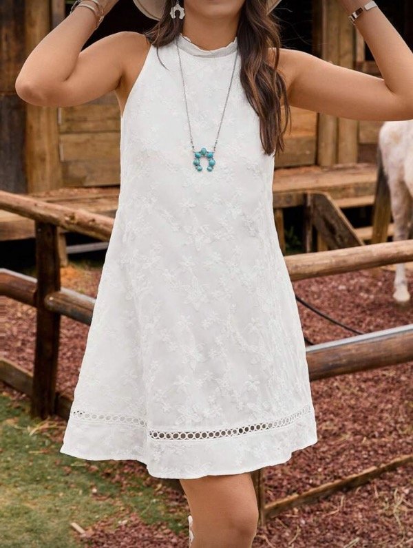 Vestido corto de algodón bordado, con un diseño romántico y femenino que resalta por su delicadeza.